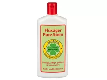 Anwendung: Flüssiger Putz-Stein auf feuchten Schwamm geben, den entstandenen Schaum auf verschmutzte Stelle auftragen, mit feuchtem Tuch (Mikrofaser) nachreinigen oder mit klarem Wasser abspülen.